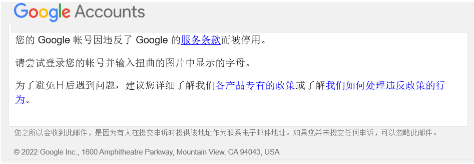 为什么我的Google账号会遭到停用啊?