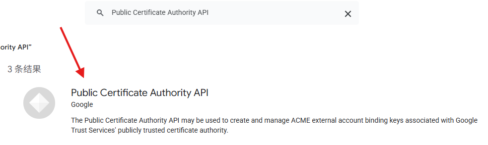在弹出的界面中搜索并启用Public Certificate Authority API;